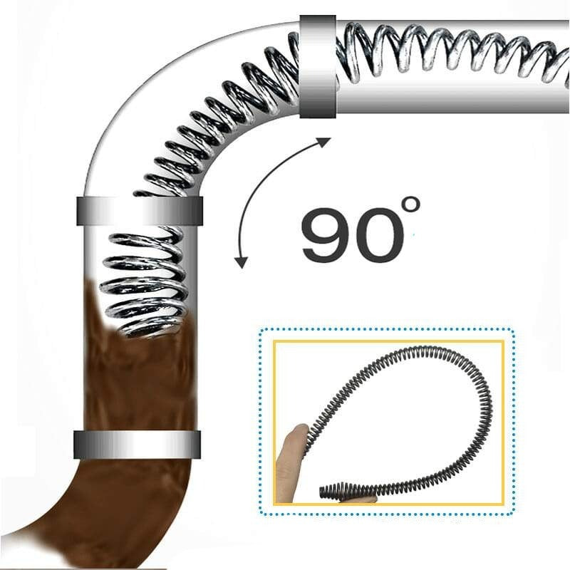 É ideal para banheiros, cozinhas e outros locais onde ocorre a maioria dos entupimentos. O cabo de mola flexível é conveniente para remoção e limpeza.