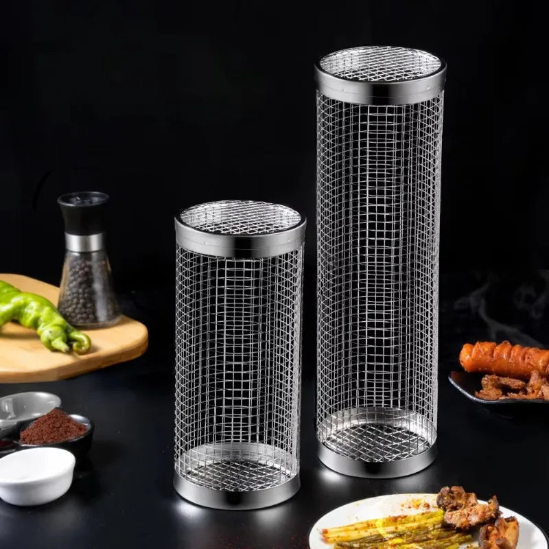 Título: gaiola de churrasco de aço inoxidável ao ar livre churrasco cilindro grill fumaça malha tambor ferramenta churrasco kamado acessórios